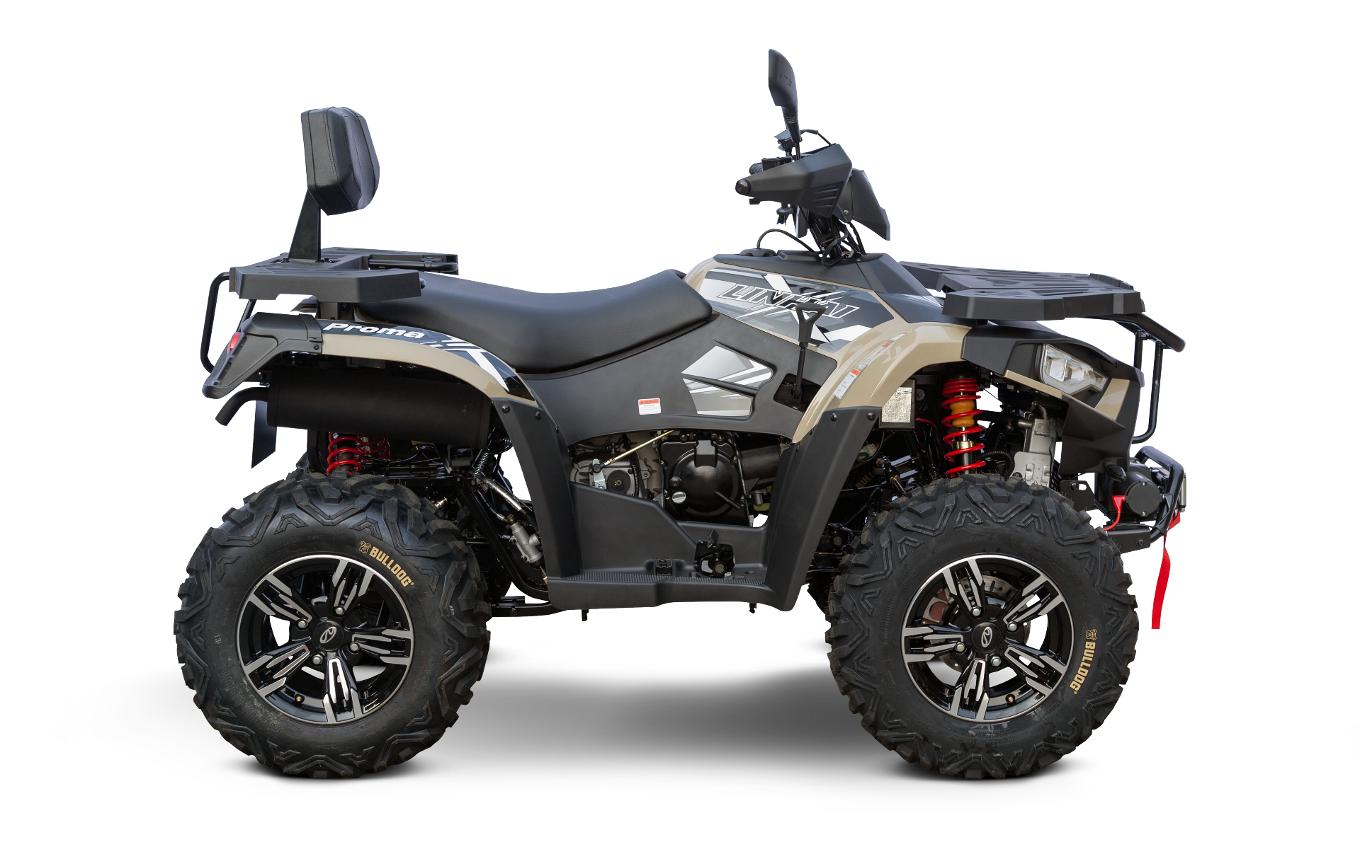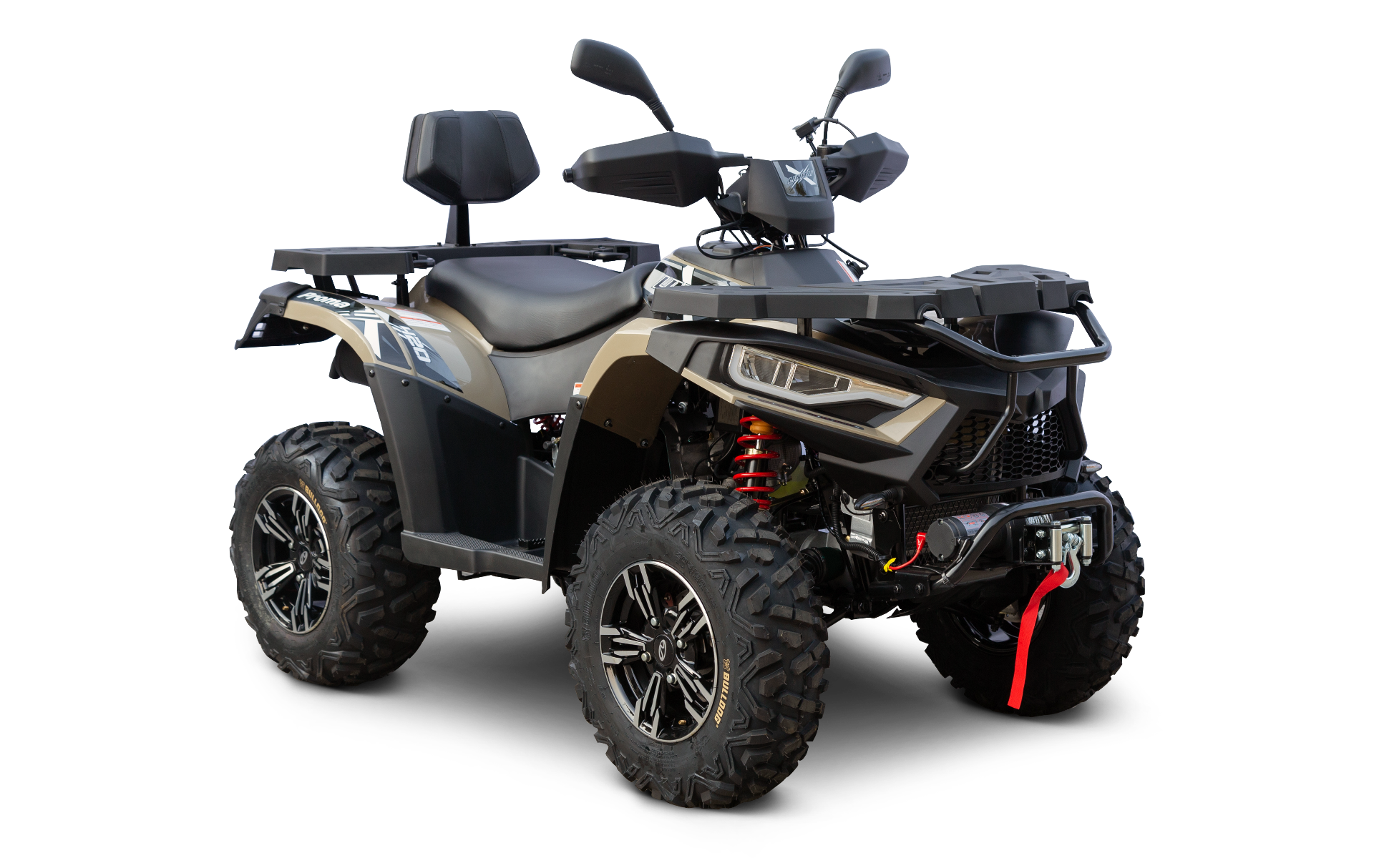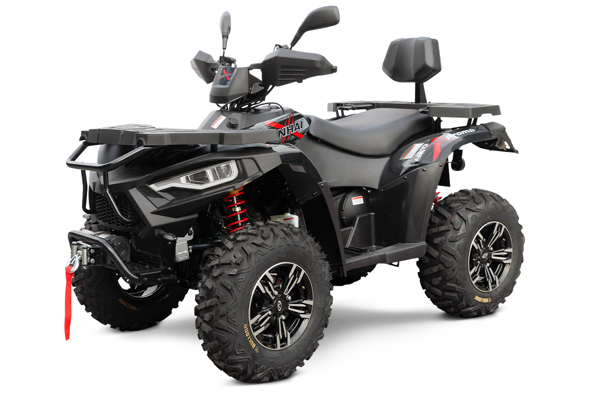 Užitková / pracovně-rekreační čtyřkolka T3b, nový design 2022, vysokovýkonné Full-LED matrixové světlomety, LED světla pro denní svícení, přední dynamické LED blinkry, kapalinou chlazený jednoválec 352 cm3, EFI, automatická převodovka CVTech, L/H/N/R, pohon 2x4 / 4x4, přední zavěšení McPherson, zadní dvojitá A-ramena, 3x kotoučová brzda, přední ochranný rám, kompozitní nosiče vpředu a vzadu, el. naviják s dálkovým ovládáním, ALU disky