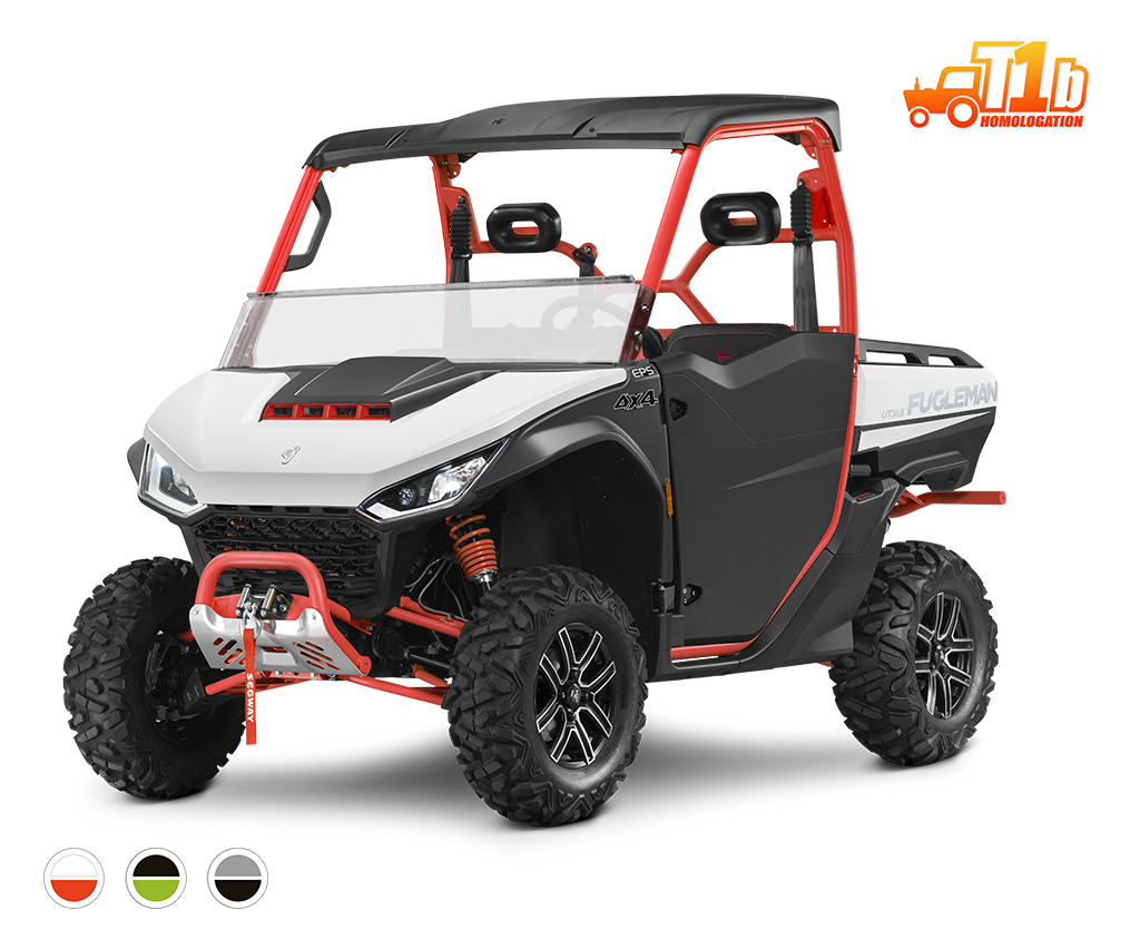 Pracovní UTV T1b, čtyřtaktní dvouválec DOHC 1000 cm3 EFI, automatická převodovka P/R/N/L/H, elektrický posilovač řízení EPS, pohon 4x4 s uzávěrkou diferenciálu, dvojitá A-ramena vpředu / dvojitá A-ramena se stabilizátorem vzadu, hydraulické tlumiče s progresivními pružinami, sklápěcí korba, elektrický naviják 3500 lbs, tažné zařízení, anatomicky tvarovaná sedadla s hlavovou opěrkou, digitální přístrojová deska, přední, zadní ochranné rámy, čelní ochranné plexi, pevná střecha, hliníkové 14" disky, 26" pneu, bezpečnostní sítě ve dveřích, Smart Commanding System (SCS) + mobilní aplikace Smart-Moving App
