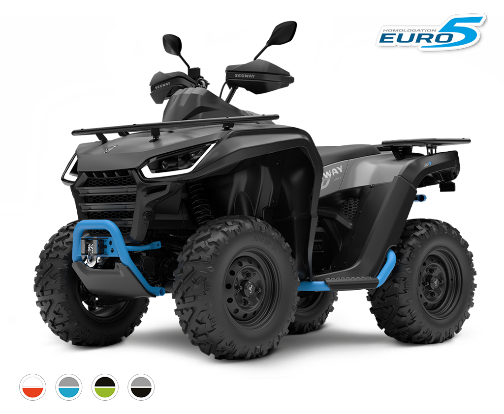 Užitková / pracovně-rekreační čtyřkolka, E5 - L7e, kapalinou chlazený jednoválec 570 cm3 EFI, automatická převodovka P/R/N/L/H, brzdění motorem, pohon 4x4 se dvěma uzamykatelnými diferenciály, dvojitá A-ramena vpředu i vzadu, hydraulické tlumiče s progresivními pružinami, přední, zadní a boční ochranné rámy, tažné zařízení, el. naviják 3000 lbs, kompozitní nosiče vpředu a vzadu, Full-LED osvětlení, prodloužené sedadlo spolujezdce s opěrkou zad, 12V zásuvka, 12" ocelové disky, ochranné kryty rukojetí