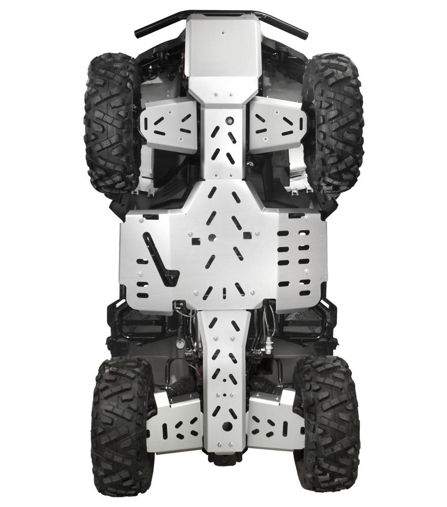 Kompletní kryty podvozku Shark Accessories, ochrana spodní části čtyřkolky před poškozením, z odolného anodizovaného a lehkého 4mm hliníku letecké kvality, montážní otvory pro snadnou údržbu, výřezy pro snadnější čištění čtyřkolky, integrované kryty nášlapů, nízká hmotnost, snadná montáž